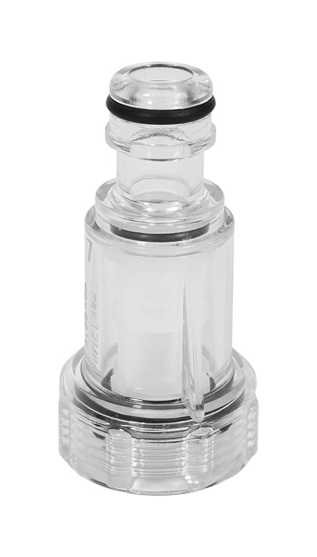 Muovinen tulovesisuodatin painepesureihin. Ehkäisee epäpuhtauksien joutumista venttiileihin ja suuttimeen