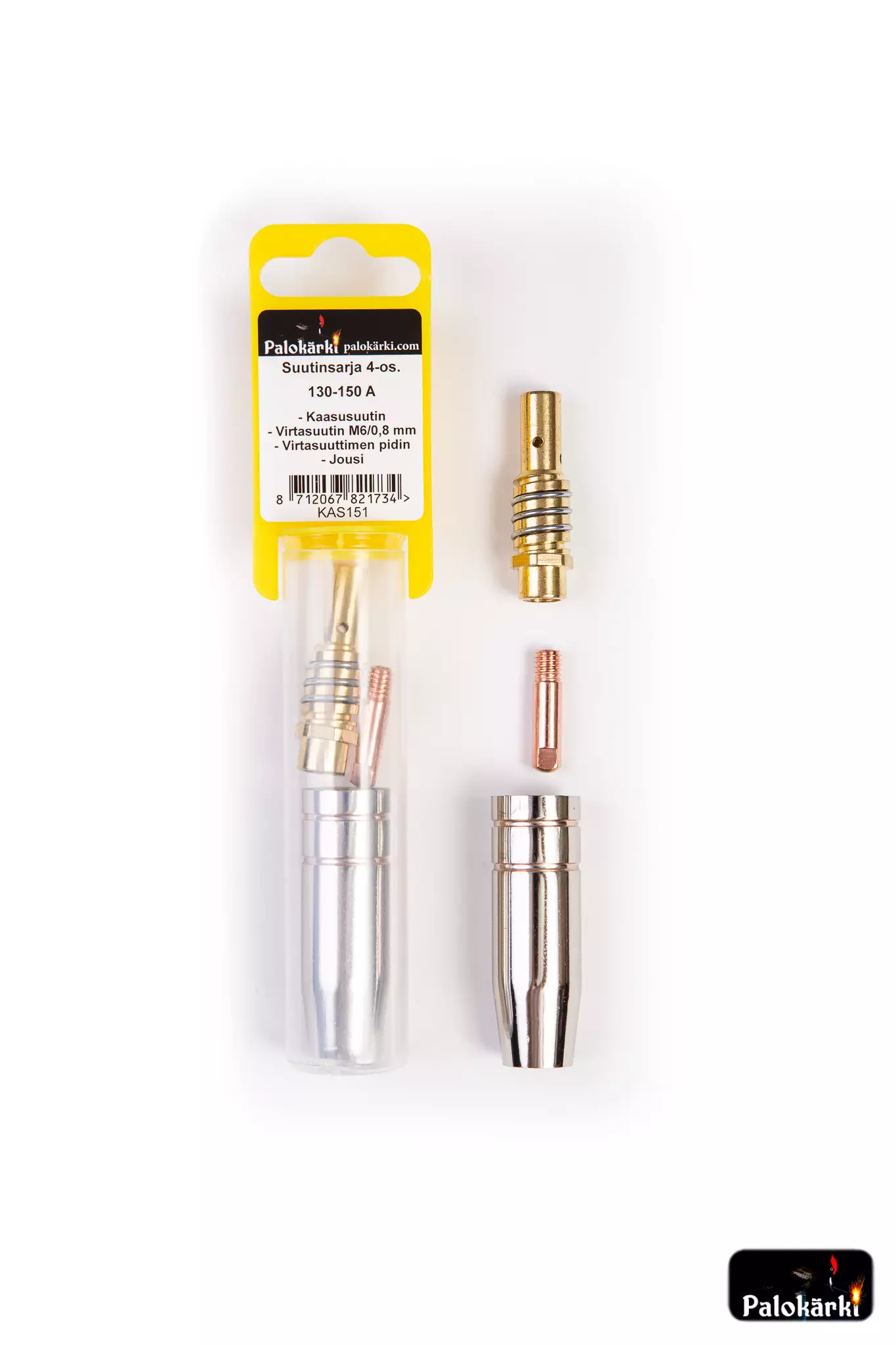 Suutinsarja 4-os. 130-150A: Kaasusuutin, Virtasuutin M6/0,8mm, Virtasuuttimen pidin, Jousi