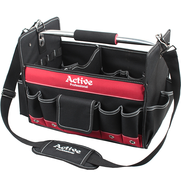 Avoimessa työkalulaukussa työkalut ovat helposti saatavilla. Tuettu kangasmateriaali tekee laukusta kevyen, mutta kuitenkin kestävän. Laukkua on miellyttävä nostaa ja kantaa tukevasta, pehmustetusta metallikahvasta. Laukussa on ulkopuolella 10 pientä sekä kaksi suurempaa avointa taskua ja lisäksi yksi vetoketjutasku. Sisällä on 11 pientä taskua ja paikkoja kynille yms. Laukun sisätila voidaan jakaa kahteen liikuteltavalla tilanjakajalla. Laukussa mukana irrotettava hihna olalla kantamiseen.