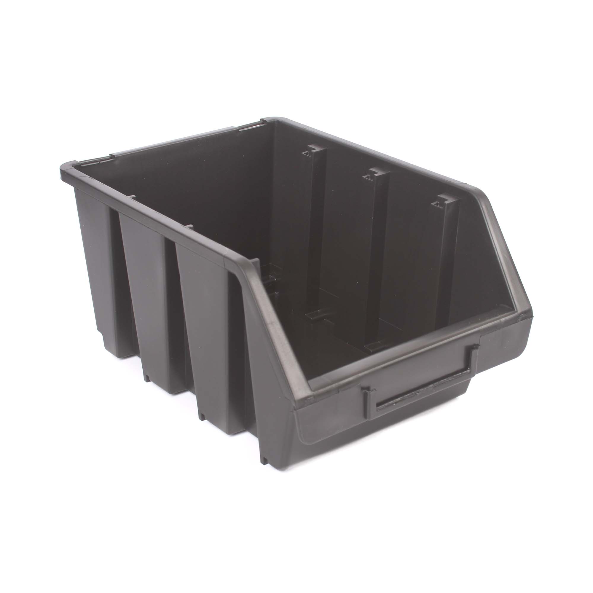 Vankkarakenteinen avolokerikko tavaroiden säilytykseen. Lokerikot voidaan pinota päällekkäin. Etureunassa paikka etiketille.