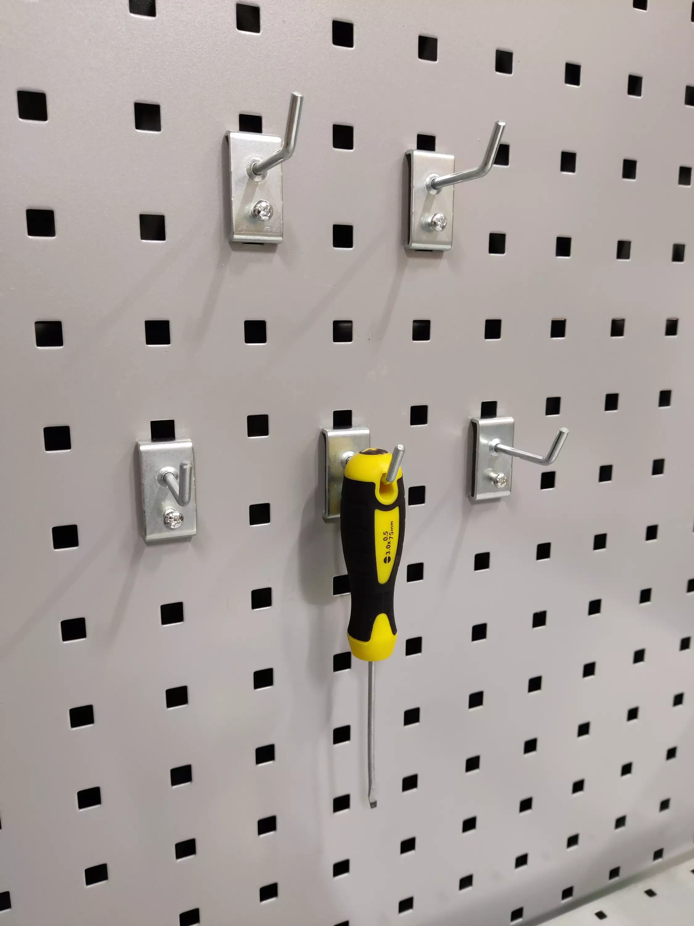 Reikälevypiikki, reikälevypidike, työkalupiikki, työkalupidike, reikälevy, reikäpelti, ripustuskoukku, työkalukoukku, työkalujärjestelmä, työkalutaulu, varastointi, R-kannatin R-1 D5