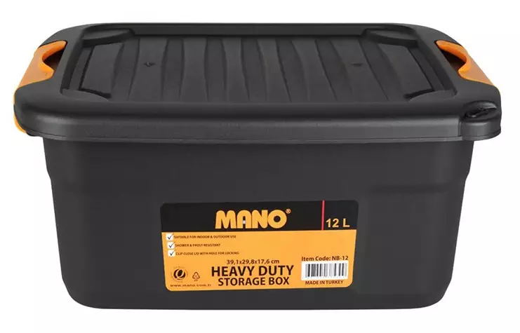 Manon erittäin tukeva ja kestävä kannellinen varastolaatikko. Mustan säilytyslaatikon päädyissä on keltaiset kannen kiinnikkeet, joilla lukitset kannen kiinni laatikkoon. Laatikon kahdessa... Lue lisää