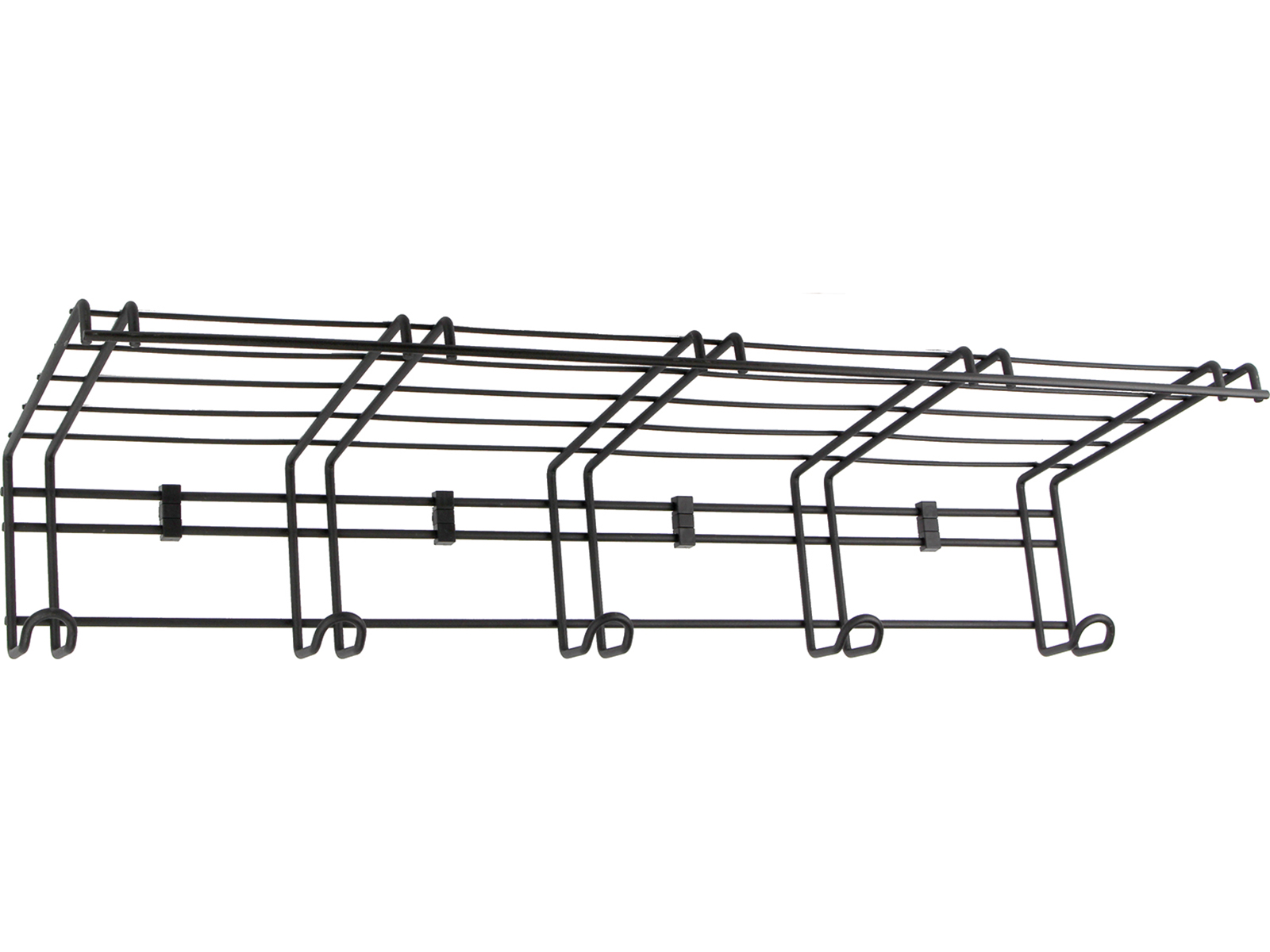 Naulakko sisältää ripustuskoukut viidelle vaatteelle ja muovisten asennuspalojen ansiosta on helppo asentaa, Mustaksi maalattu naulakko on terästä