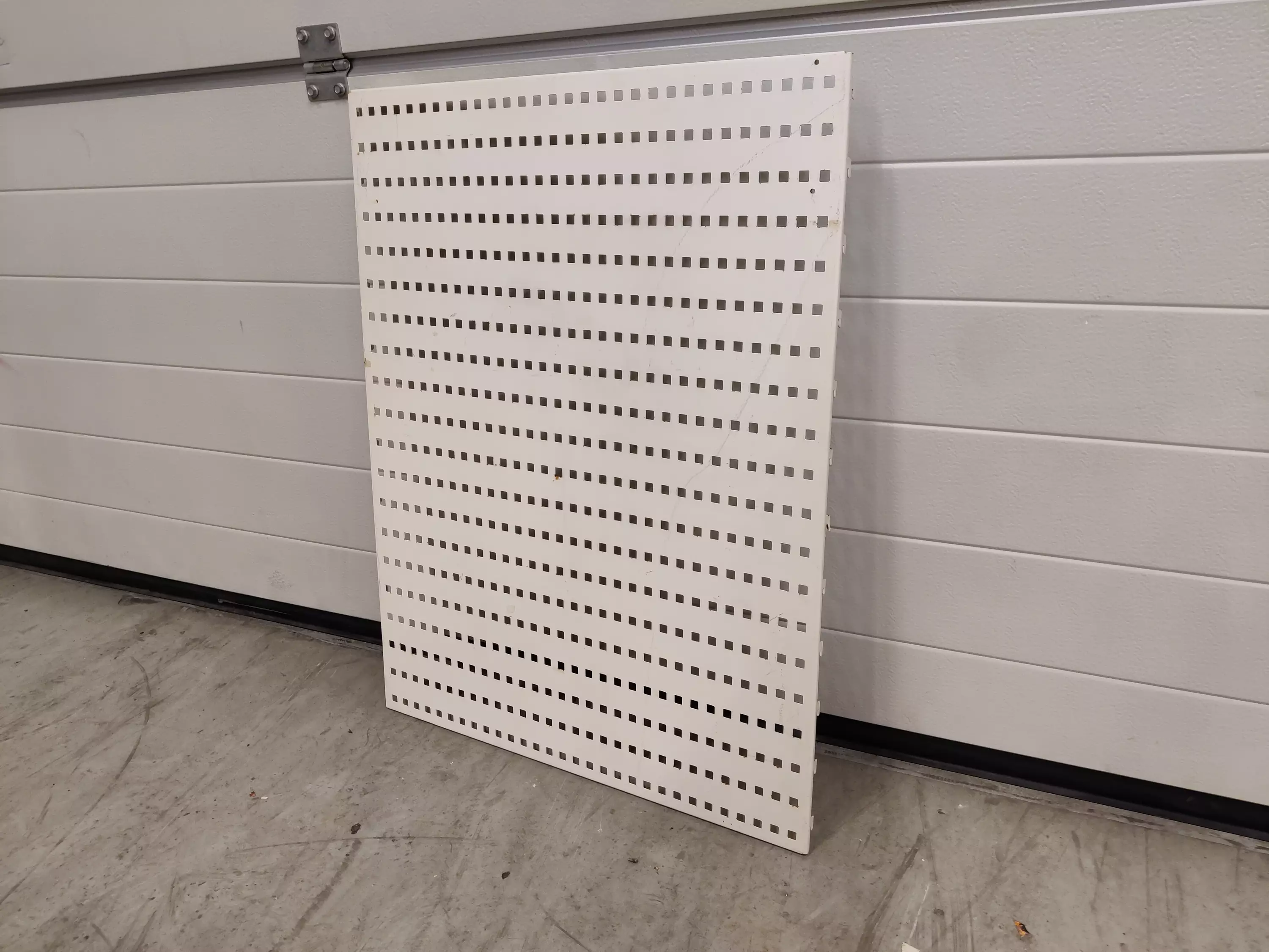 Käytetty, mutta ehjä metallinen reikälevy on edullinen vaihtoehto autotalliin, pakettiautoon tai pajalle työkaluseinäksi.