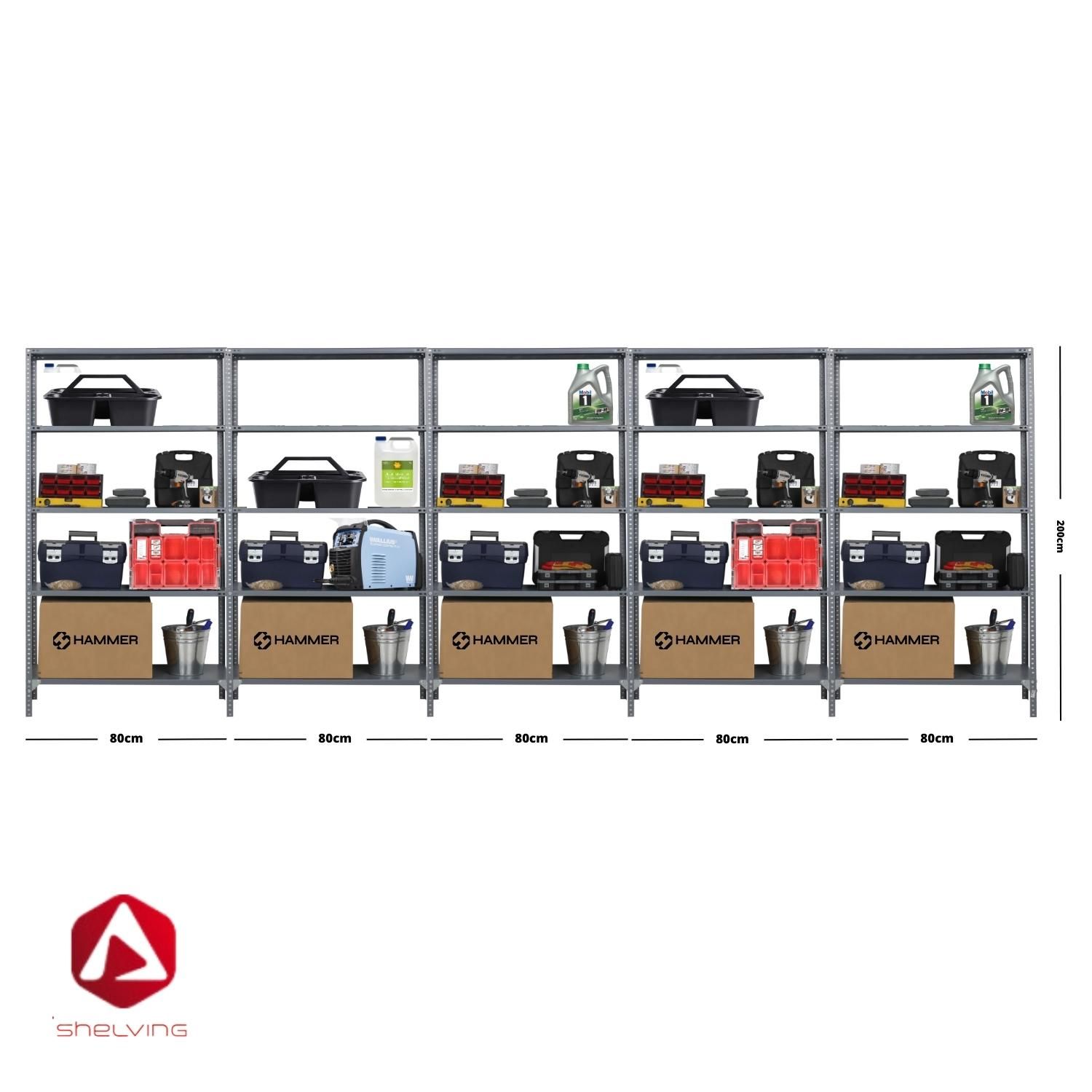 Shelving metallihyllysarjan jokaisen hyllyn kantavuus on jopa 100 kg hyllyn mitoista riippuen. Hyllykkö on helppo kasata pulteilla. Säädettävät metallihyllyt 2 cm:n välein. Mukautettavat monipuoliset modulaariset metallihyllyt mihin tahansa tilaan. Täydellinen modulaarinen metallihyllyjärjestelmä auttaa pitämään tavarasi järjestyksessä autotallissasi, varastohuoneessa, kaupassa, toimistossa, arkistossa ja muissa varastotiloissa. Valitsemalla erikokoisia moduuleja saat kaiken irti ja luot oman räätälöidyn säilytystilaratkaisun. Hyllystön kasaamiseen tarvitset vain 2kpl 13mm kiintoavaimia tai jakoavaimen.