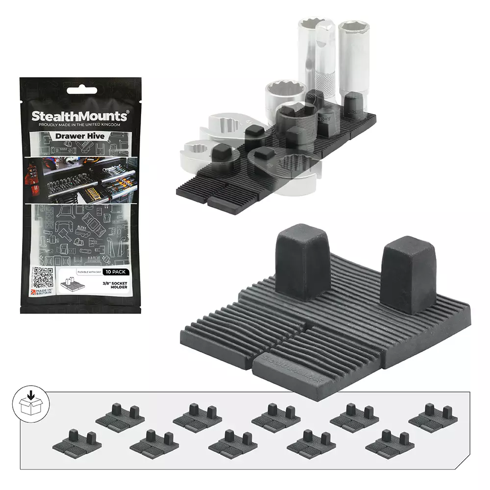 Stealth Mounts Drawer Hive, hylsypidike 3/8" 10kpl - Työkalujen säilytystelineet - 0020826 - 2