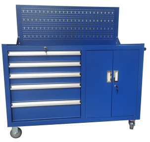 Materiaali pulverimaalattu teräs, paksuus 1mm - 5 vetolaatikkoa (1 iso, 1 keskikoko, 3 pientä) - Laatikot lukittavia - Kaappi kaksoisovilla, lukittava - Reikälevyseinä - Tukeva rakenne - 4... Lue lisää