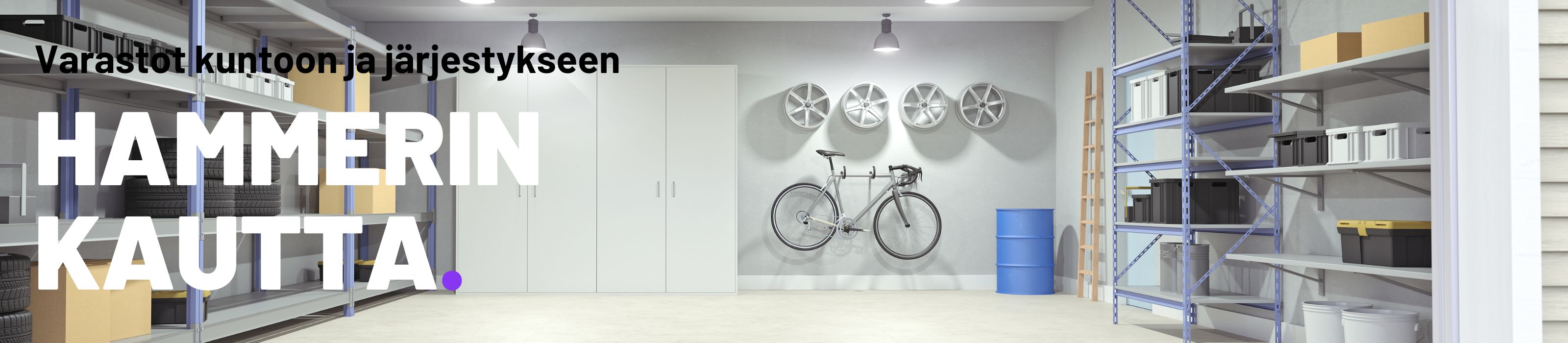 Varastohyllyt ja hyllytarvikkeet Hammer verkkokaupan kattavasta valikoimasta luotettavasti, nopeasti sekä aina edulliseen hintaan. Etsitpä sitten varastohyllyjä yrityksen varastotilaan, autotallin säilytysjärjestelmää tai harrastetilan monipuolista säilytysratkaisuja, Hammerilta löydät ratkaisut varastointiin. Meiltä saat myös monipuoliset myymäläkalusteet. Varastohyllyt ja hyllytarvikkeet myös Keravan myymälästämme. Käsittelemme tilaukset nopeasti ja toimitamme ympäri maan. Laaja valikoima laadukkaita uusia sekä käytettyjä varastohyllyjä..Varastokalusteet joka tarpeeseen edullisesti Hammerin kautta.